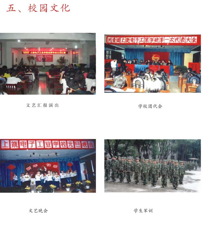 五、社会成就:学校办学十五年来,先后培养了八千多名合格的毕业生,从我校走出的毕业生一大批都已成为企业的技术骨干和管理人员,学校先后被省教育厅授予“江西省示范中等职业学校”“江西省中等职业学校先进单位”上饶市政府授予“全市先进学校”上饶市教育局授予“上饶市重点职业学校”等荣誉称号。